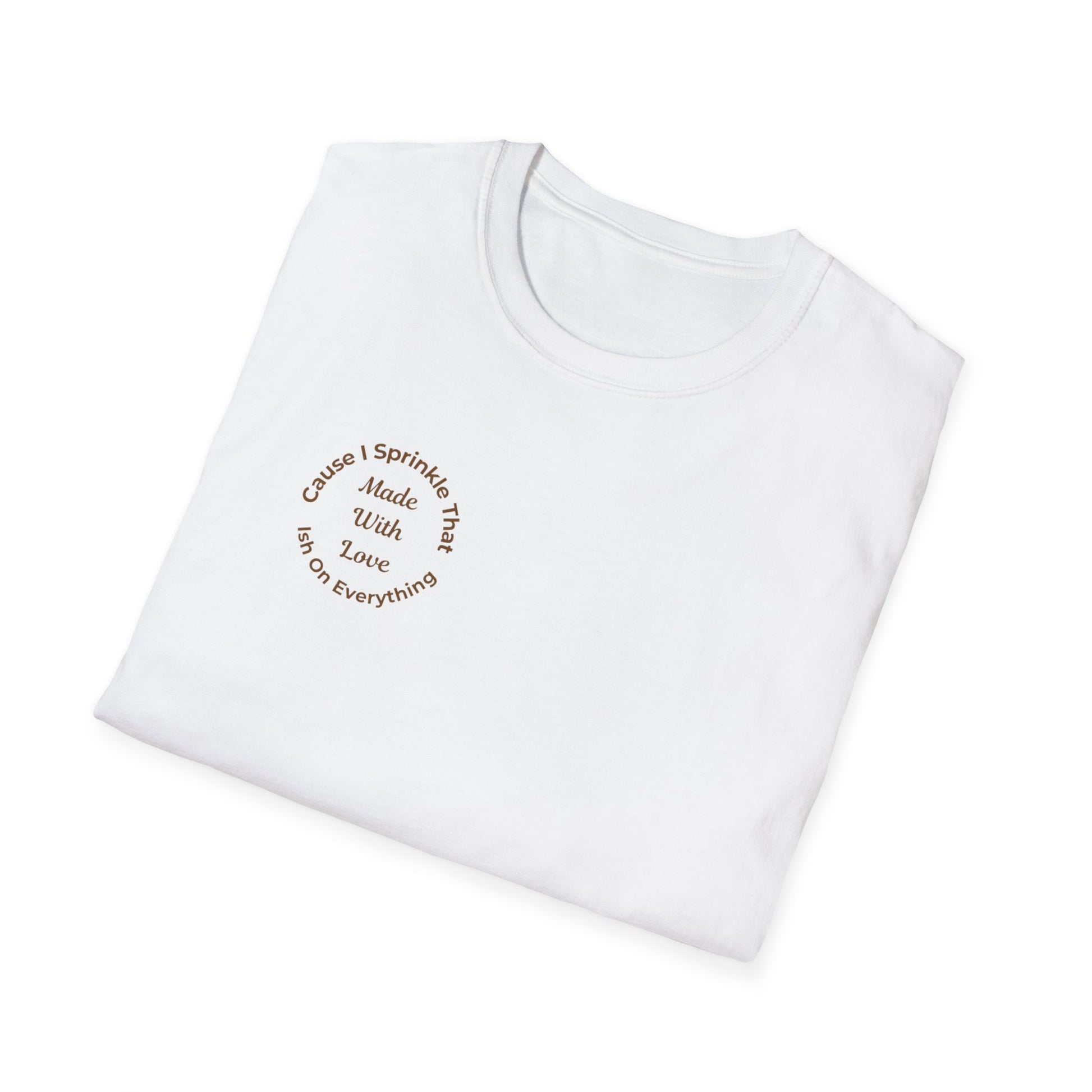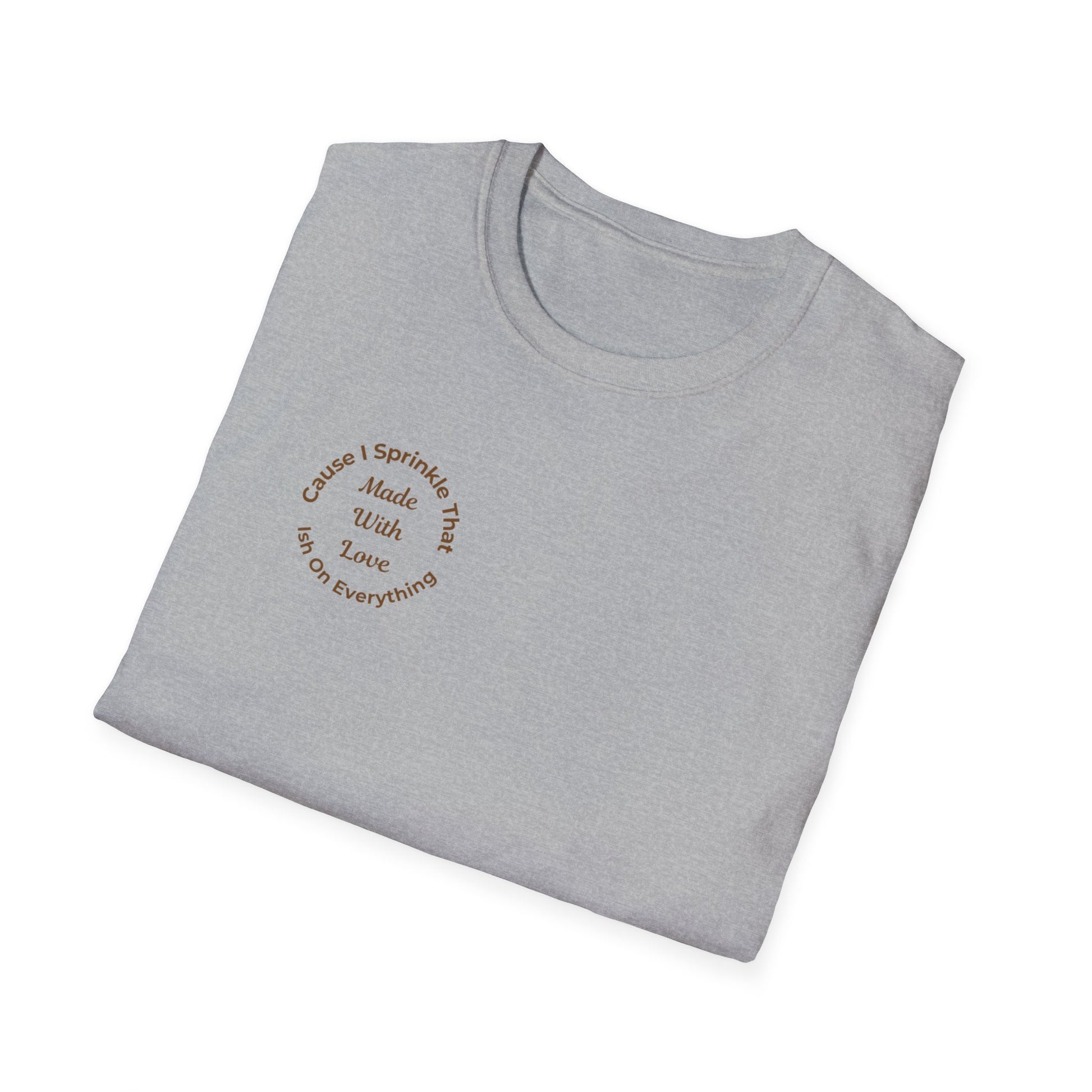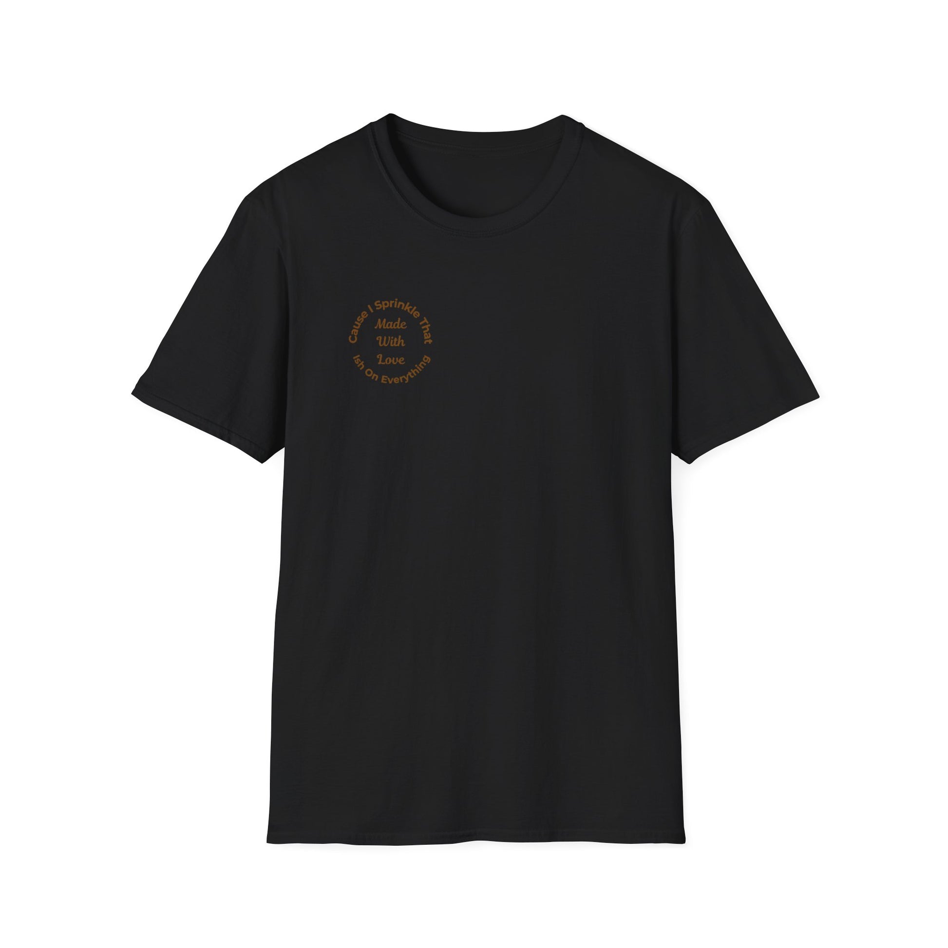 This tee is a quiet flex for anyone who cooks, creates, or simply leads with love. The circular chest logo—“Made With Love, Cause I Sprinkle That Ish On Everything”—sits close to the heart, printed in warm mocha tones on a variety of colors. It’s soft, breathable, and made to be lived in.